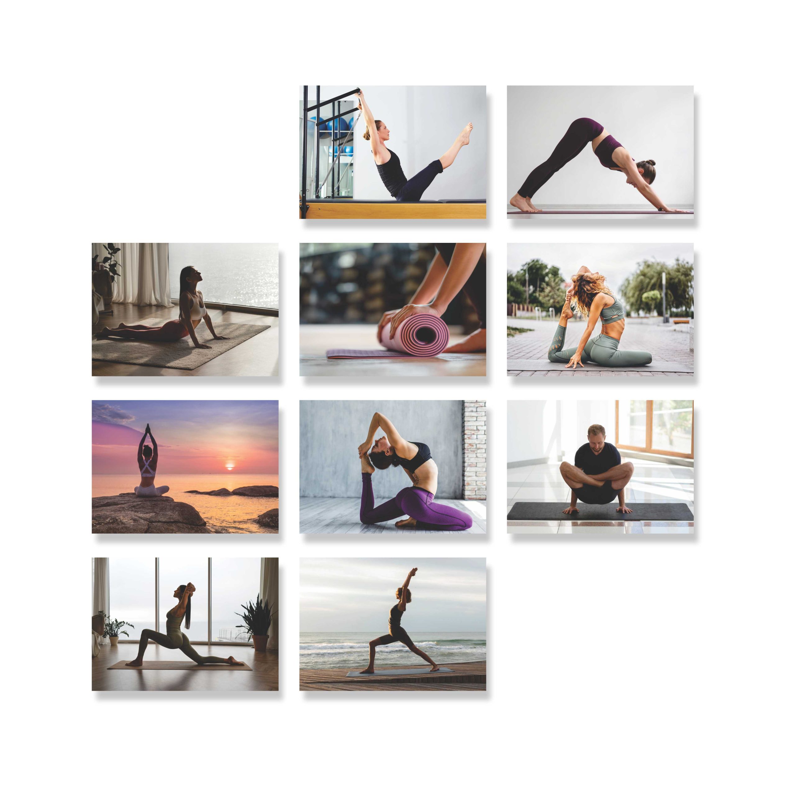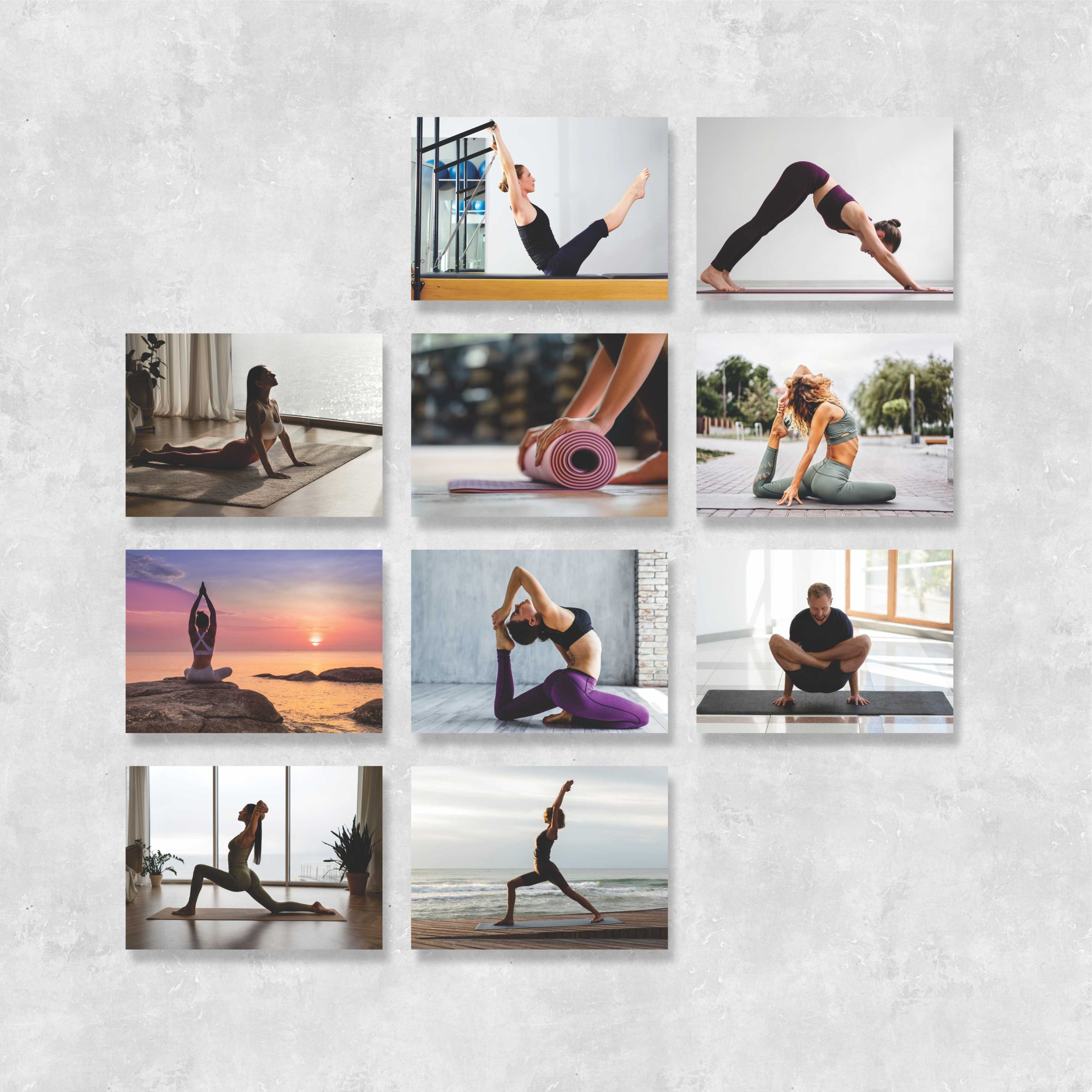 Kit 10 Placas Quadros Decorativos 20x28cm Yoga Pilates Alongamento Studio Exercícios Q163