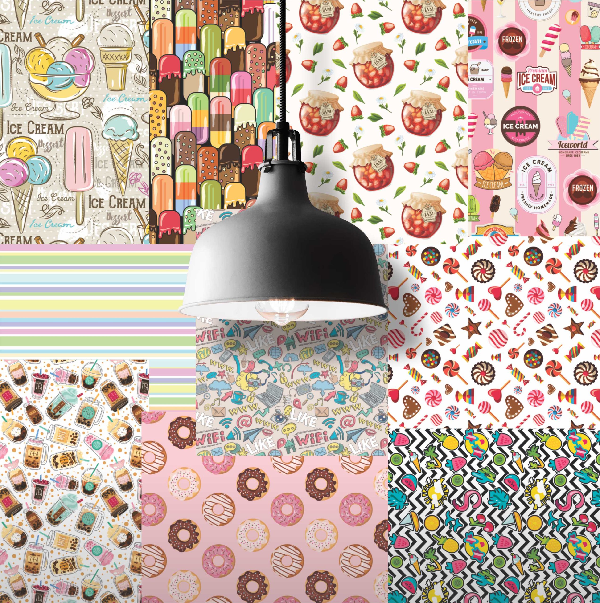 Lambe Lambe Kit Cartaz Donuts Sorvete Adesivo Doces L209